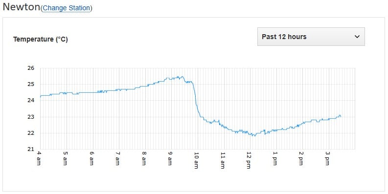 This resulted in the temperature in Newton notching a chilly 21.8°C — the lowest so far for the day.
