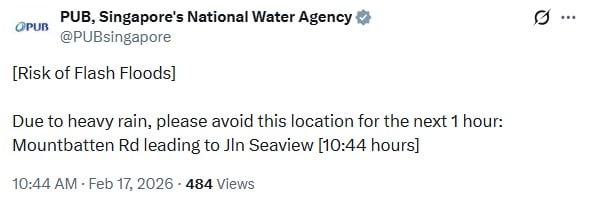 Due to the heavy rain, national water agency PUB warned of the risk of flash floods in a message on its X account at 10.44am.