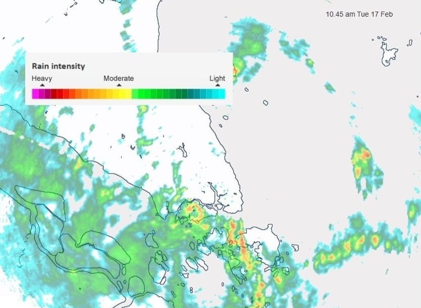 What started off as light rain at 10am evolved into thunderstorms shortly after noon, with rain continuing to fall through to 3pm.