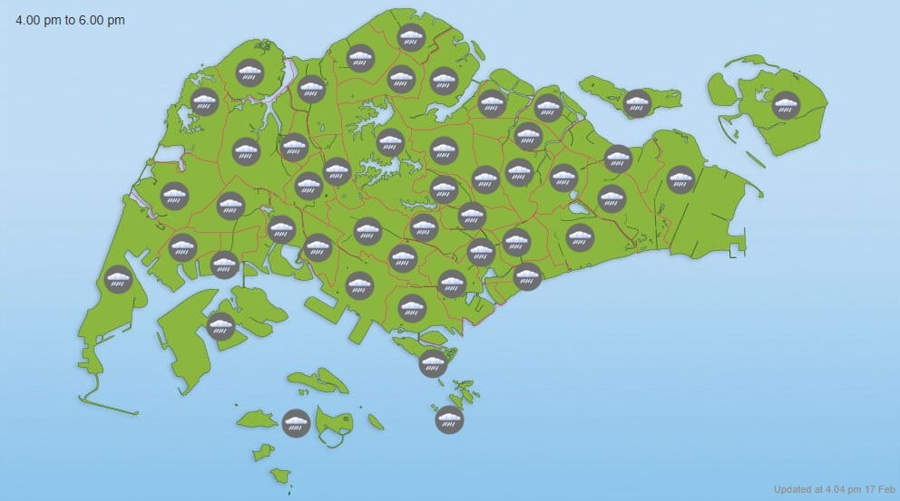 On Monday (16 Feb), the Meteorological Service Singapore (MSS) forecast more thundery showers during the first few days of the festive period.