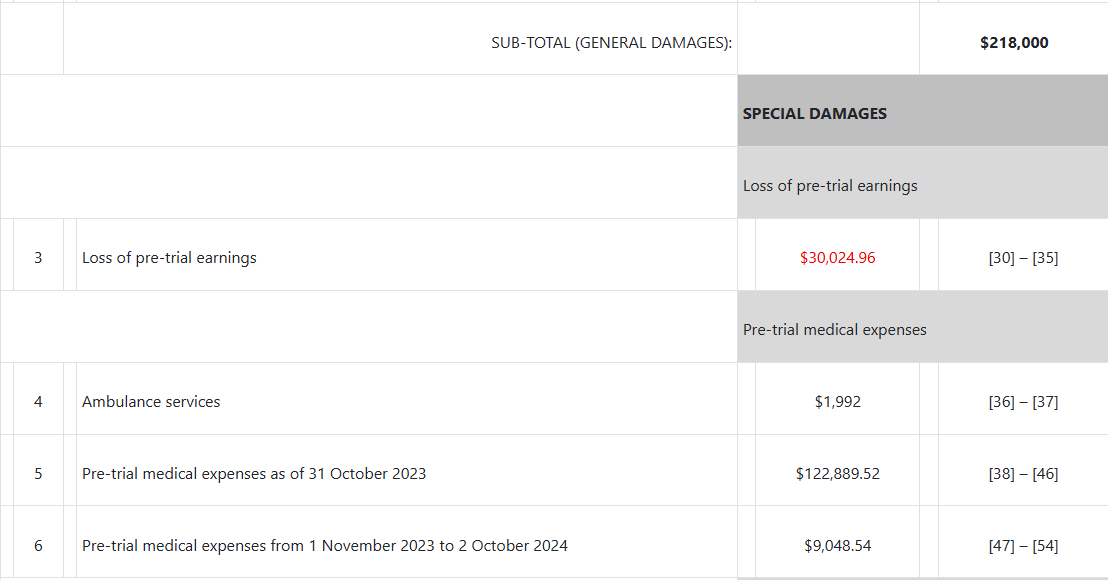 The court eventually granted S$218,000 for pain and suffering and loss of amenities.
