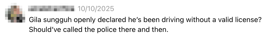 Following the post, many netizens commented that the man should be reported for driving without a licence.