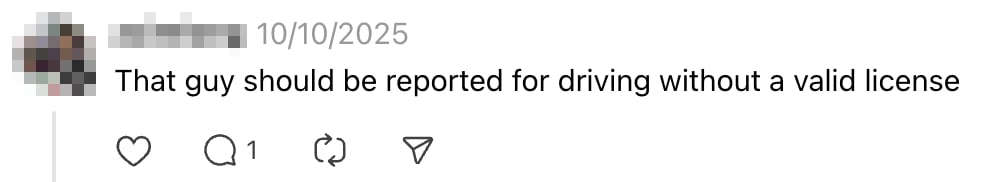 Others questioned how he was able to operate a vehicle in the first place, citing the safety risks posed by unlicensed drivers on the road.