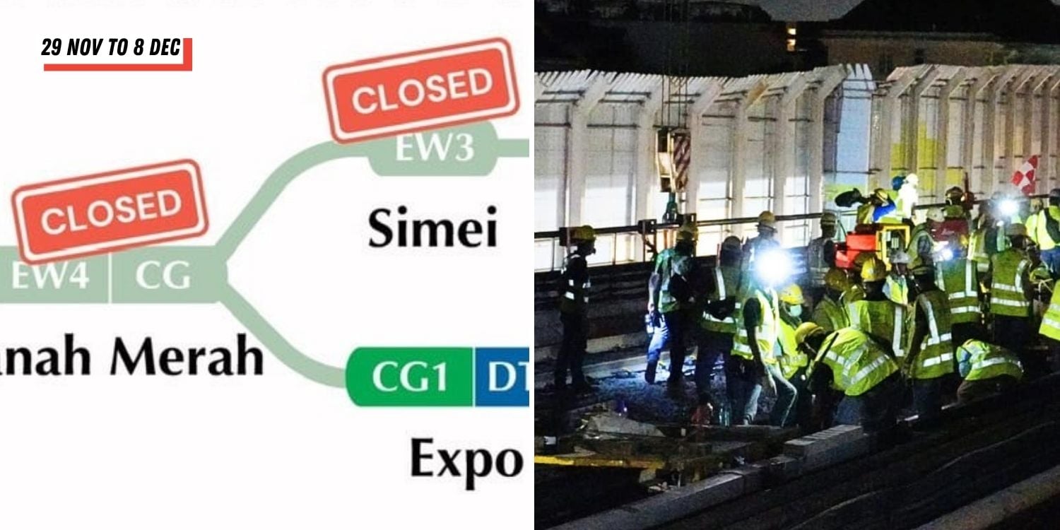 Two MRT stations on the East-West Line (EWL), Tanah Merah and Simei, will be closed for 10 days from 29 Nov to 8 Dec.