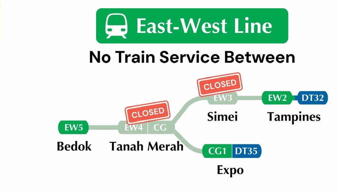 Tanah Merah & Simei EWL stations to close, no train service between Bedok & Tampines
