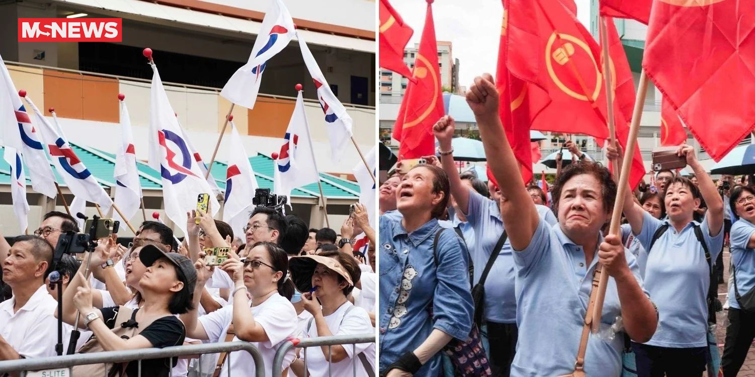 Energetic supporters of both the People’s Action Party (PAP) & Workers’ Party (WP) showed up in crowds at Poi Ching School for GE2025 Nomination Day.