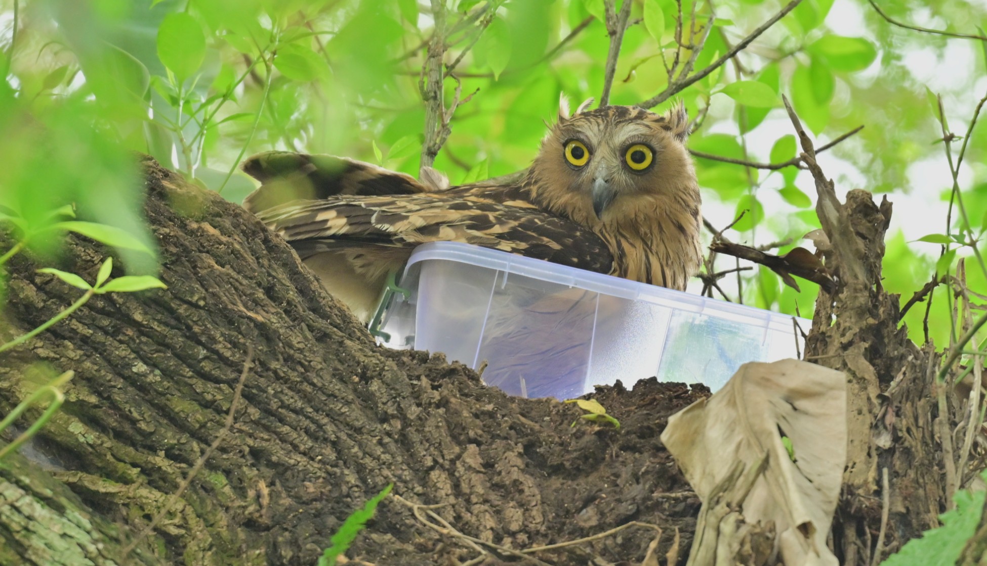“Immediately after the installation, the female buffy fish owl was seen flying back to attend to her chick.” Mr Tan said.