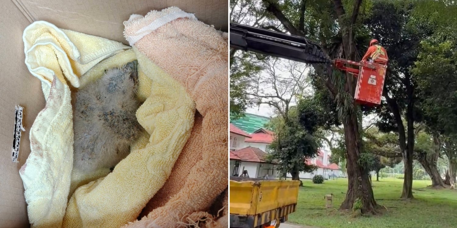 Ms Chow told MS News that an NParks officer assessed the situation and arranged for a commercial crane to place the owl chick back into the tree.