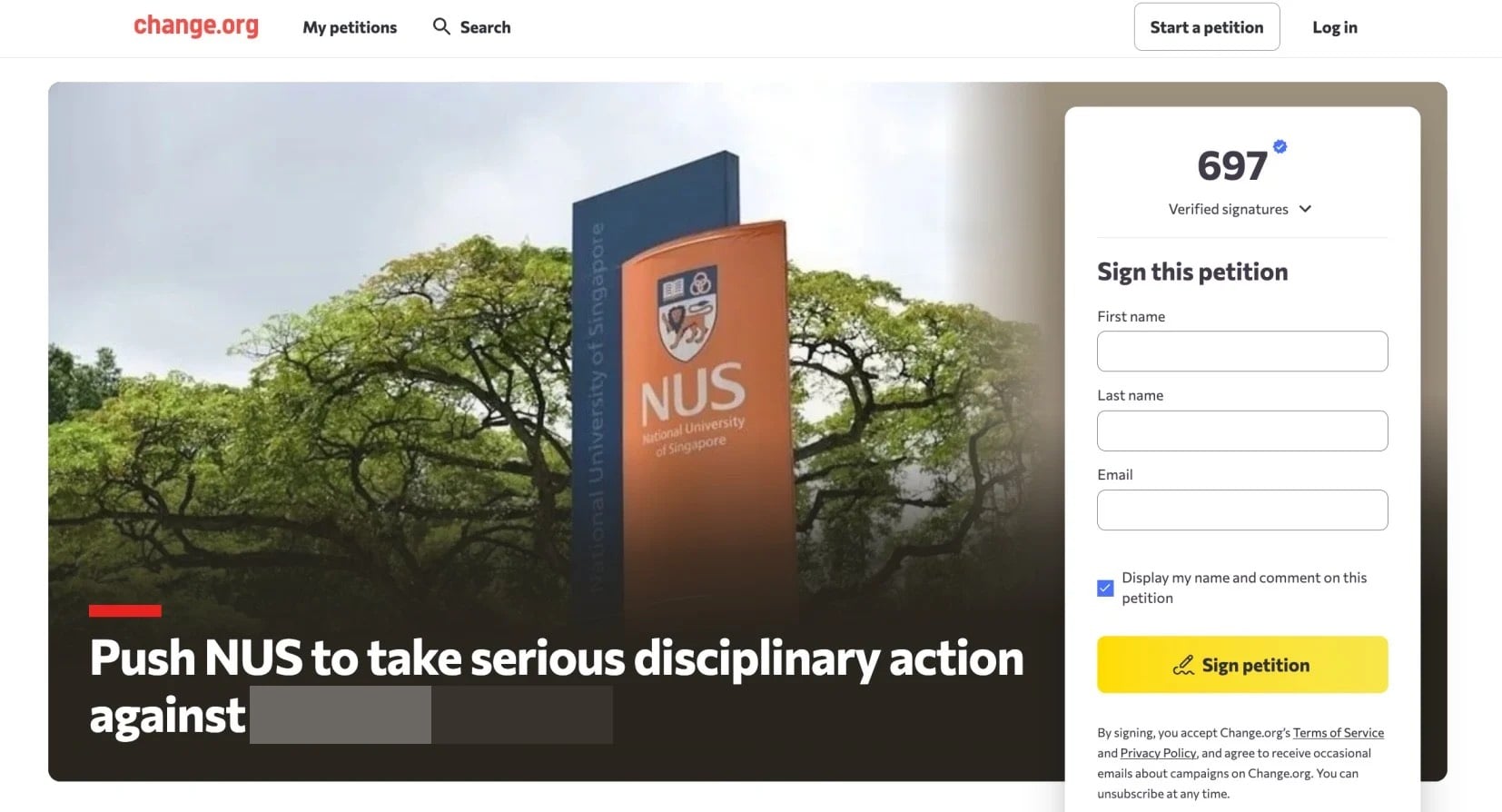 Following the incident, a petition on Change.org for NUS to take “swift and decisive” disciplinary action against the student was launched on Sunday (19 April).