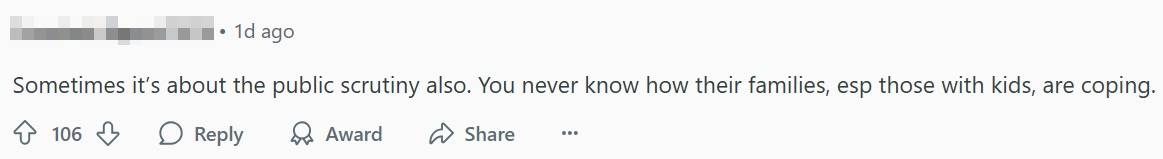Another commenter noted the public attention that MPs have to endure, highlighting the fact that their families, including their children, are also subjected to the same level of scrutiny.