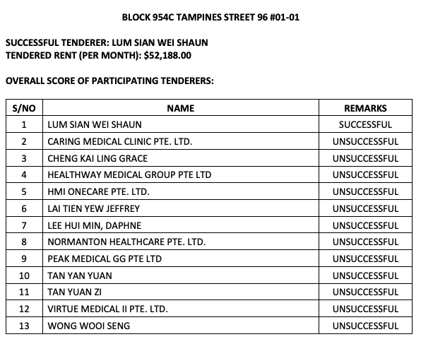 The high rental bid for the Tampines clinic first came to public attention after Dr Hisham Badaruddin, founder and CEO of Bartley Clinic, shared a screenshot of an HDB document on LinkedIn.