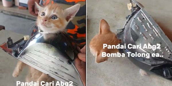Orange kitten in M’sia gets head stuck in car headlight, owner rushes it to fire station for rescue