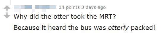 Upon realising the location of the encounter, netizens couldn’t help but joke that the otters had taken the shuttle bus that runs between Khatib MRT station and Mandai Wildlife Reserve.