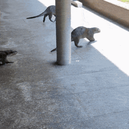 After scurrying past the original poster (OP), the trio made their way into an unshaded area before propping themselves on a ledge next to a park.