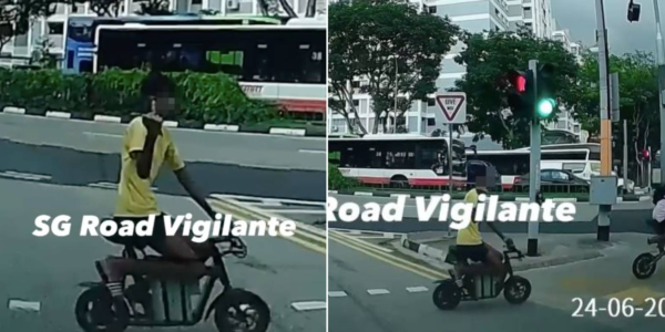 PAB rider points middle finger at driver while ignoring red light signal at Woodlands junction
