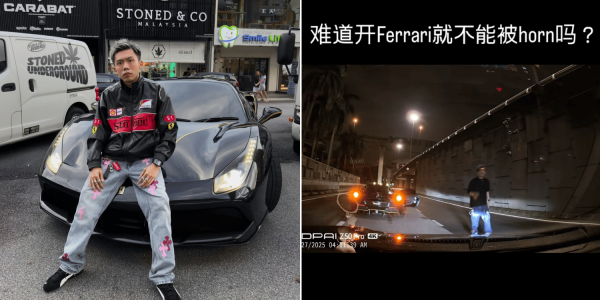 1 hour ago Co-founder of M’sian streetwear brand chases & brake-checks car in Ferrari, suspended from company