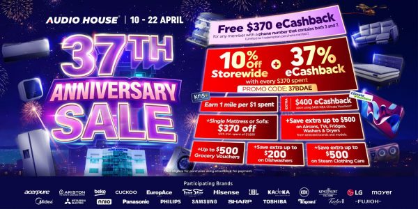 24 minutes ago Audio House celebrates 37th anniversary, offers free S$370 eCashback for members with phone numbers containing ‘3’ & ‘7’