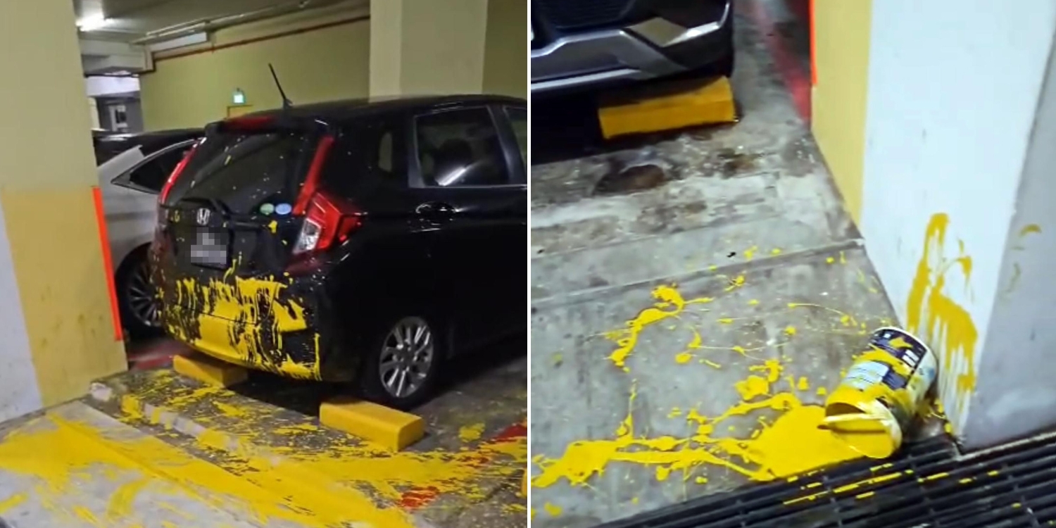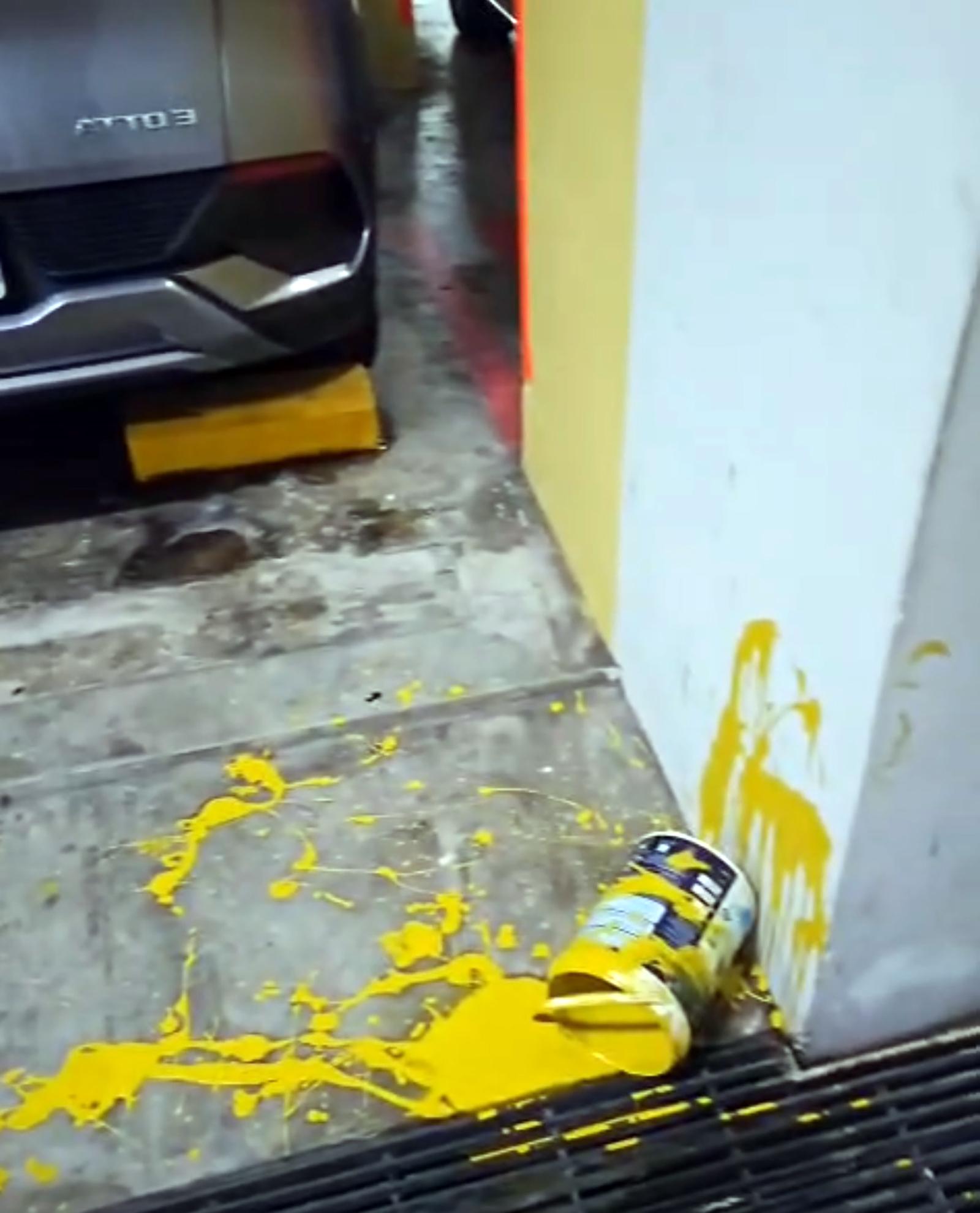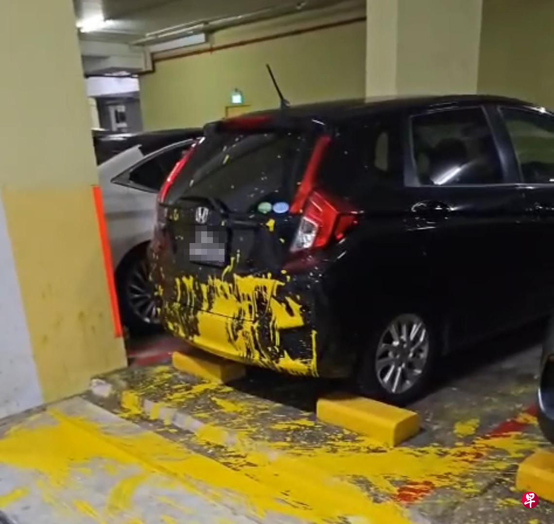 Resident Mr Hong, who was there to retrieve his vehicle, spotted a black Honda with its rear and the ground behind it splattered with yellow paint.
