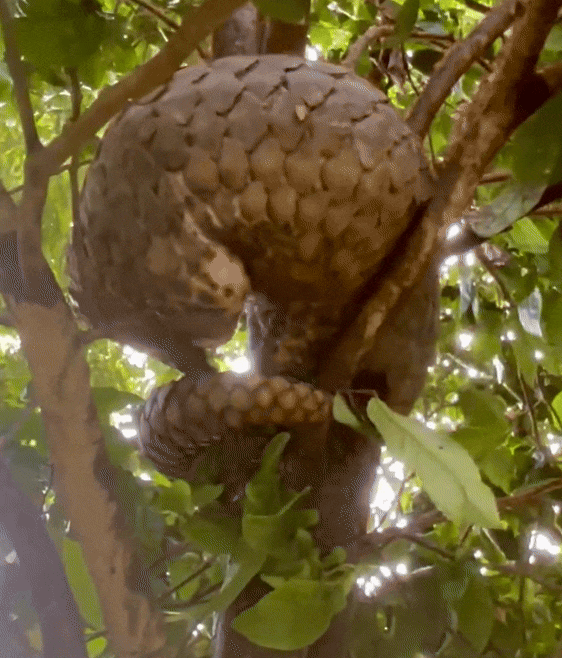 He explained that his friend, Ethan Lai, first spotted the animal searching for a place to sleep. The pangolin had then clambered onto a tree.