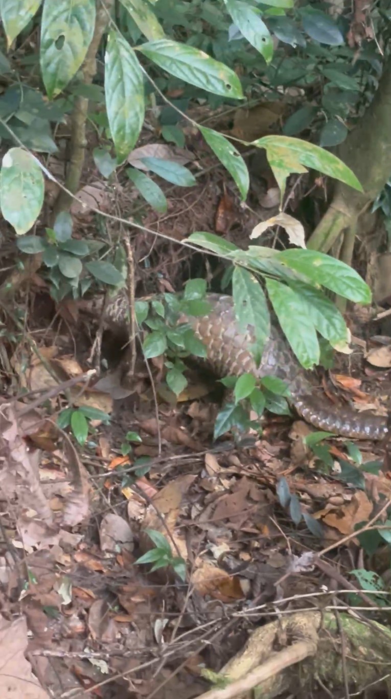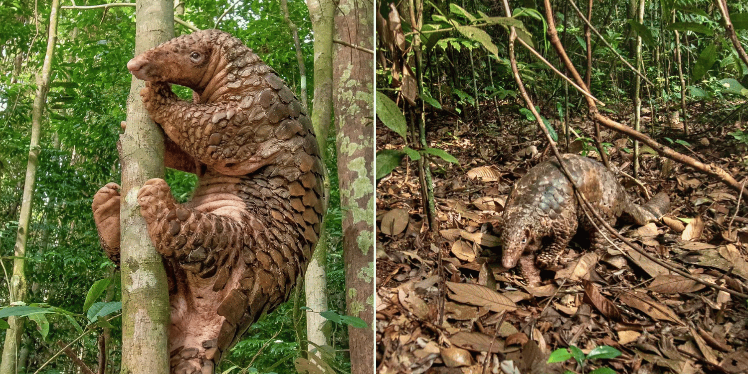 To their surprise, a pangolin emerged, foraging calmly on the forest floor.
