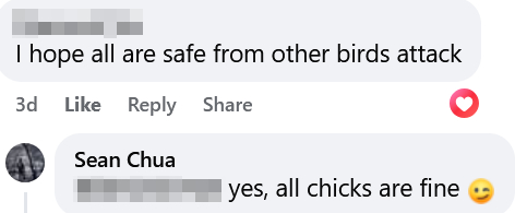 A concerned user hoped the chicks would be safe from attacks by birds, with Mr Chua confirming that they were, for now.