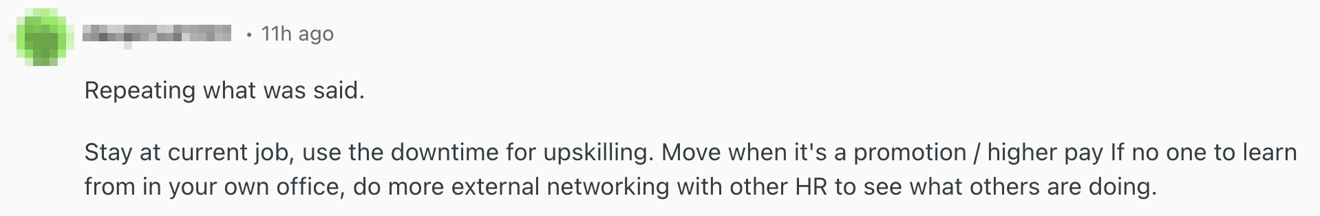 One commenter suggested that instead of leaving, the OP could make better use of their downtime by upgrading their skills.
