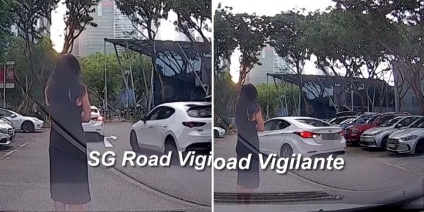Woman exits car to allegedly block other driver from taking parking lot at Marina Bay