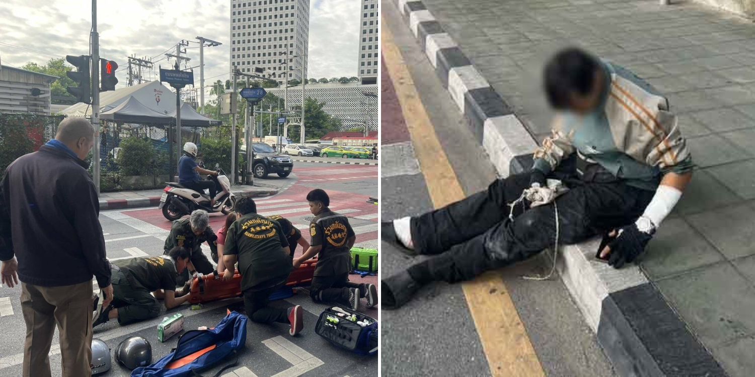 A pillion passenger suffered serious injuries after falling from an overpass in Bangkok, Thailand, on Sunday (24 Aug) morning.
