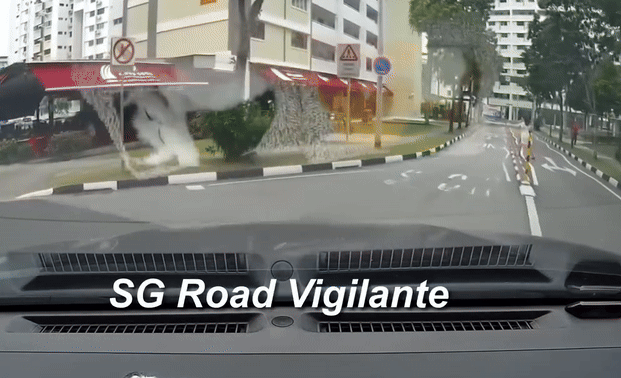 The incident was caught on dashcam footage and shared on the SG Road Vigilante (SGRV) Facebook page.