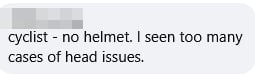 Amid all the arguing, one user noted that the cyclist wasn’t wearing a helmet while riding on the road.