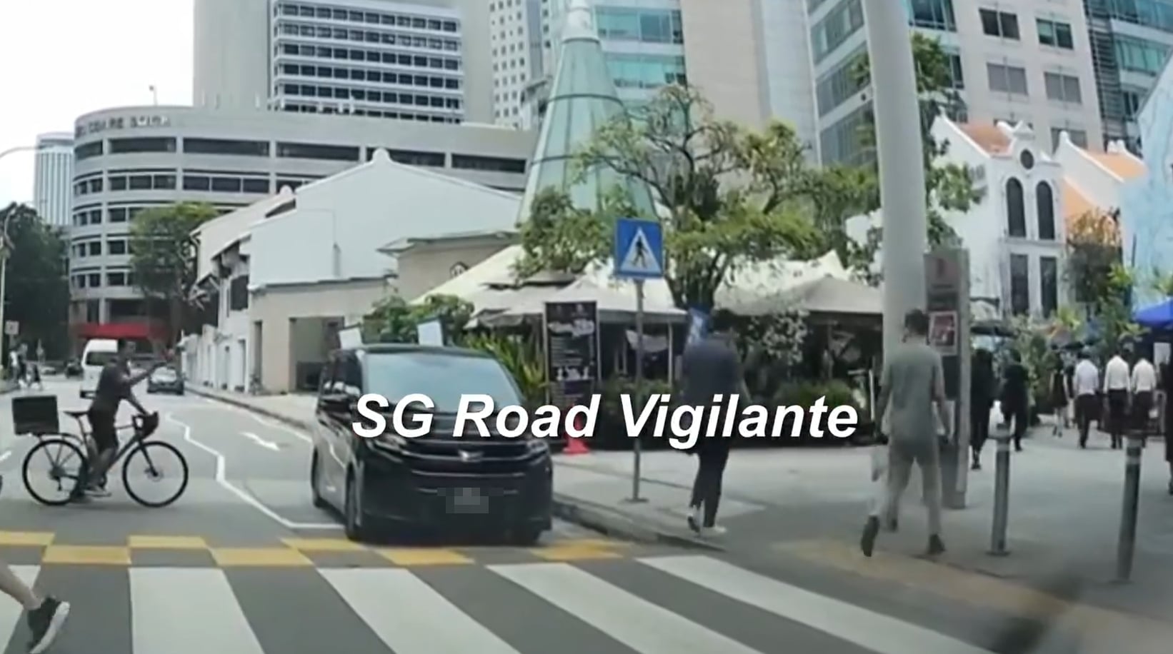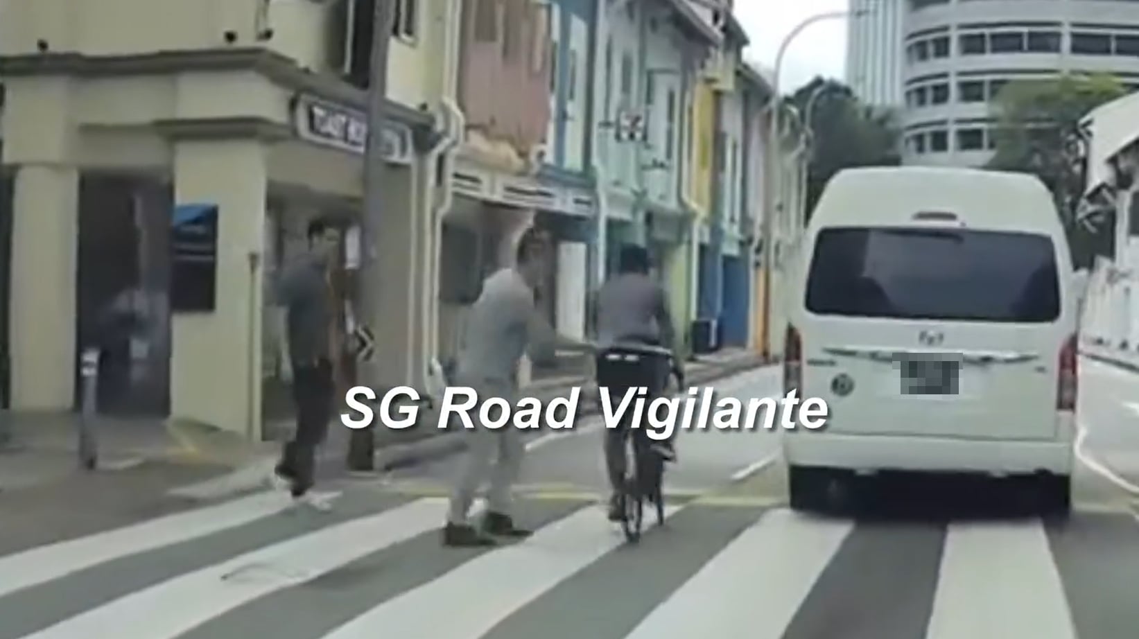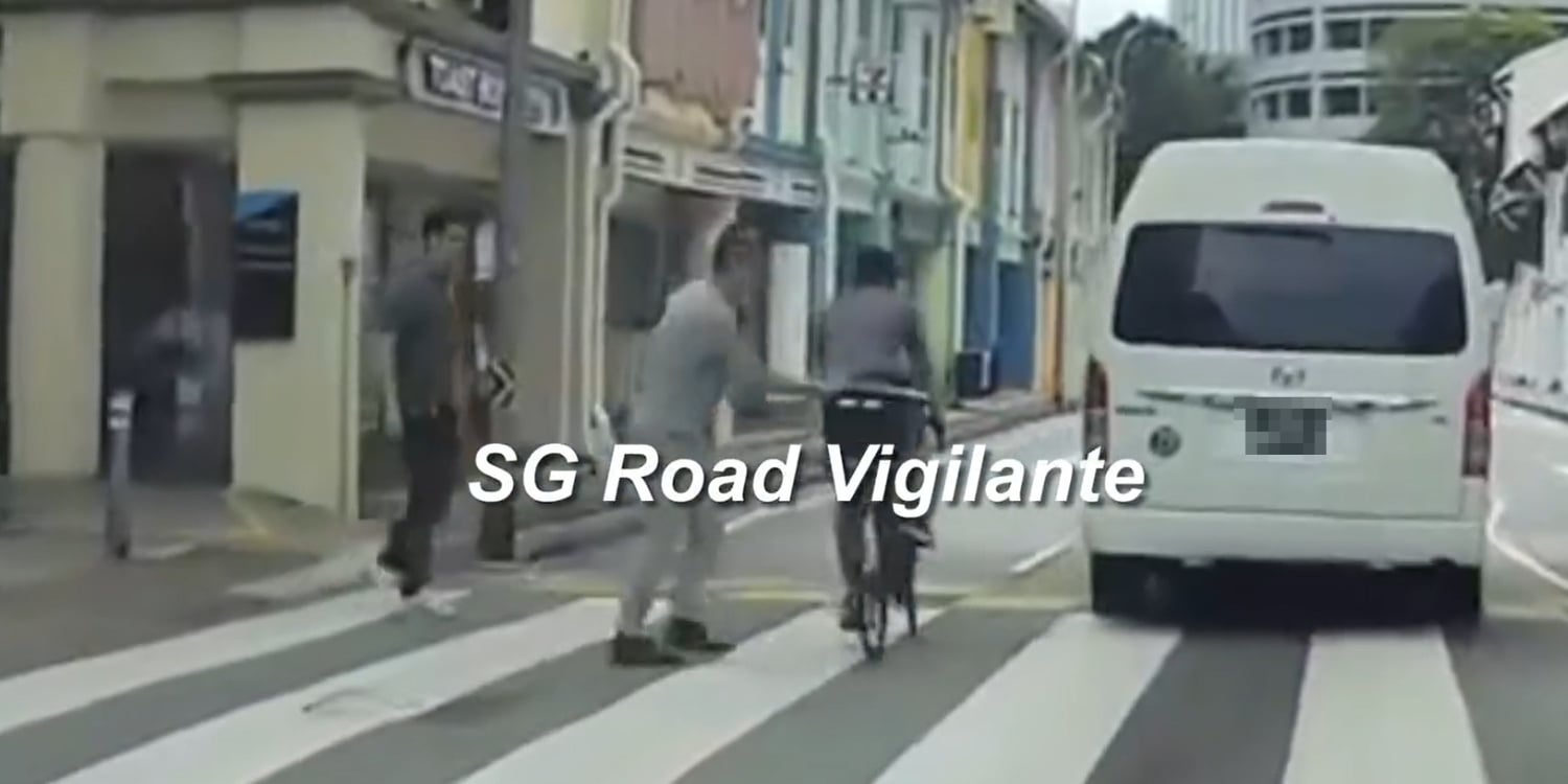 Cyclist gets shoved by pedestrian in near-miss at Raffles Place zebra crossing, stops to argue with him