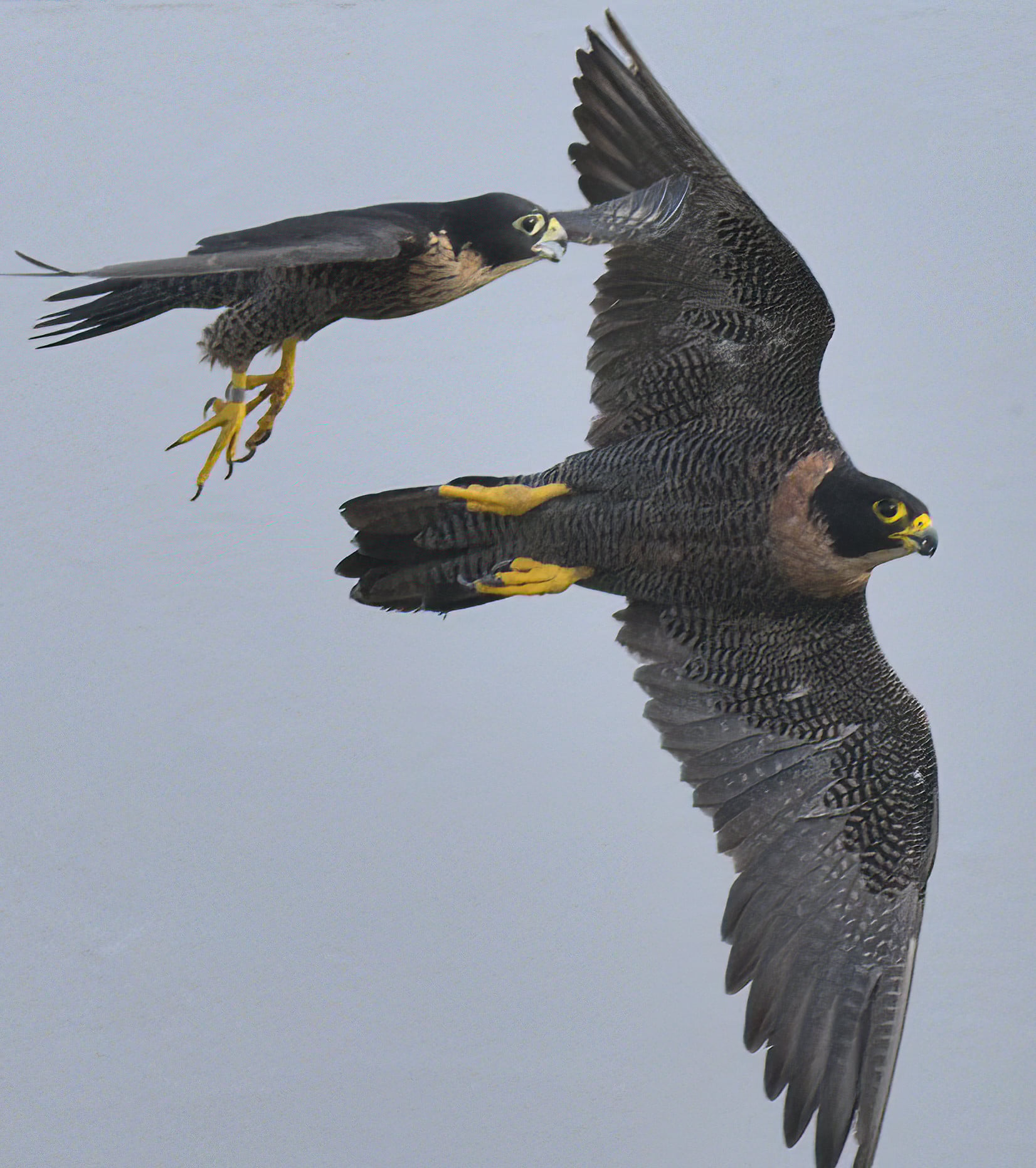 A local peregrine falcon family has continued to captivate wildlife lovers, with an adult falcon recently seen taking its juvenile on what appeared to be a training flight.