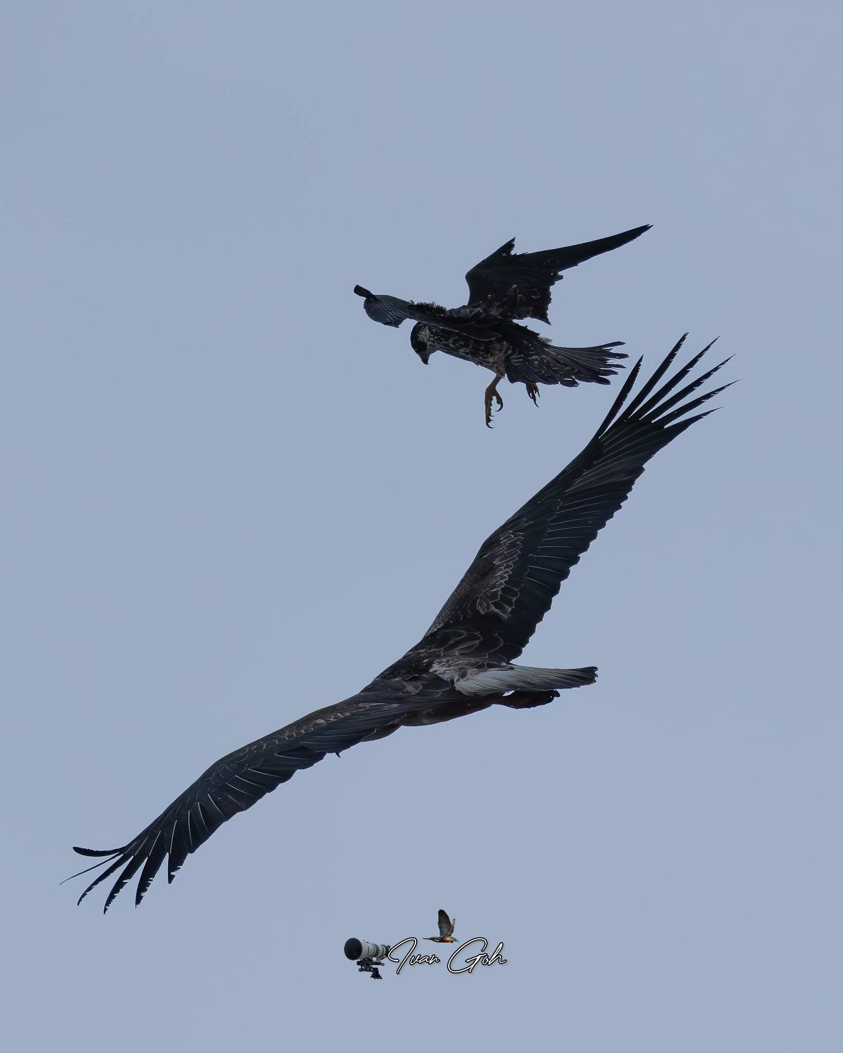 “The peregrine falcon suddenly wanted to claim that this is its ‘no-fly-zone’ territory, and it started to attack the eagles,” he said.
