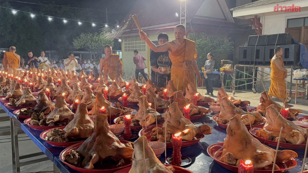 In June 2024, a man returned to a temple with 99 pig heads to express gratitude after his prayers for a family were answered.