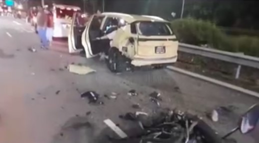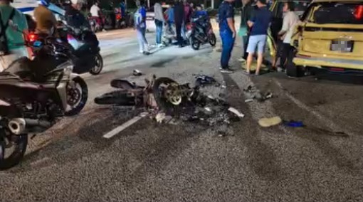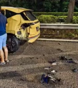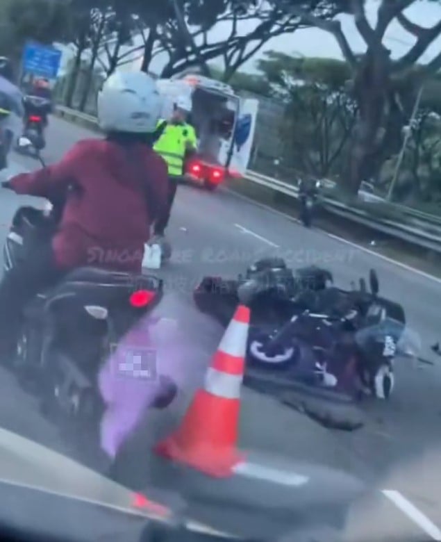 Images posted by Singapore roads accident.com on Facebook showed the almost destroyed motorcycle lying in the centre of the expressway, behind a yellow car.