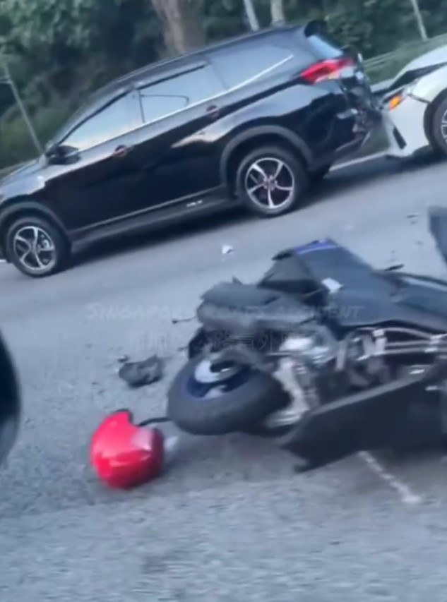 A video posted by Singapore roads accident.com on Facebook showed a clearer view of the mangled motorcycle.