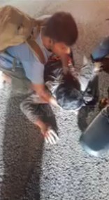 A few feet away lay a man wearing a white long-sleeved top and grey pants, his head being cradled by a paramedic.