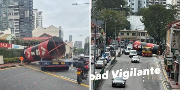 Massive pipe falls off trailer on Balestier Road, blocks traffic for hours