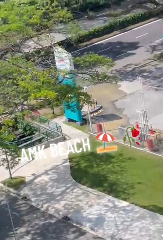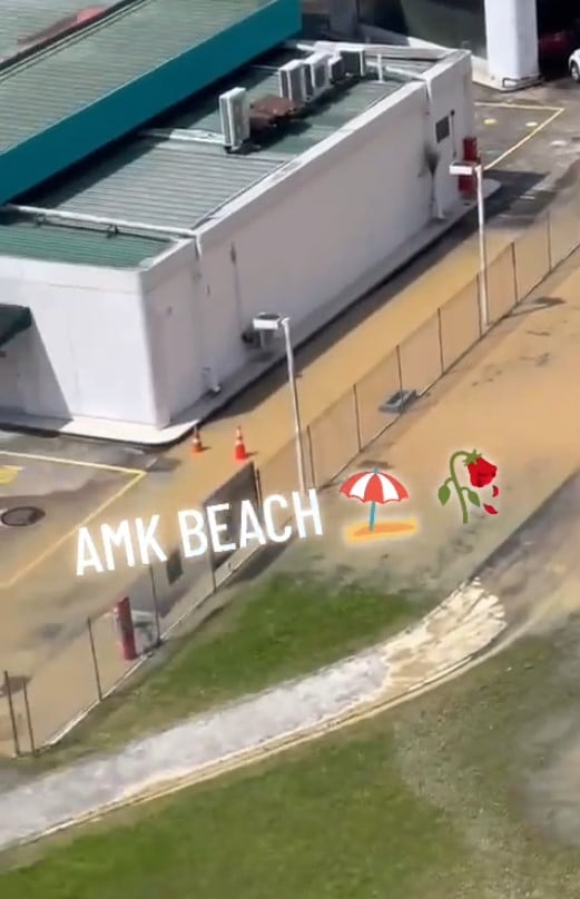 Videos shared on TikTok showed a small field between the petrol station and an HDB block inundated with water.