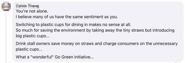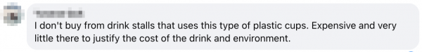 A few commenters said they have stopped buying drinks from stalls that use such plastic cups.