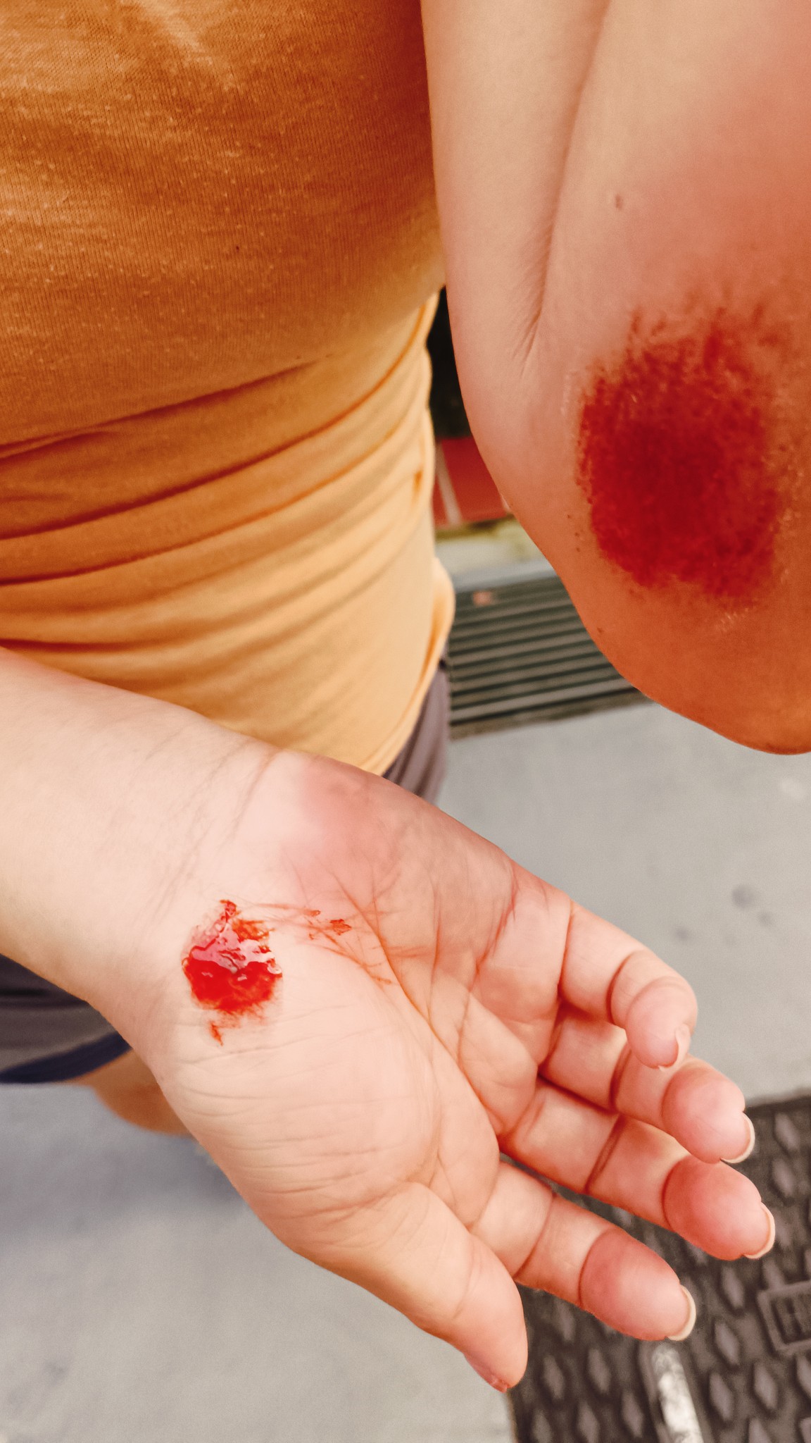 The wound she suffered on her right knee was the most serious. It was still bleeding more than 12 hours after the incident, she added.