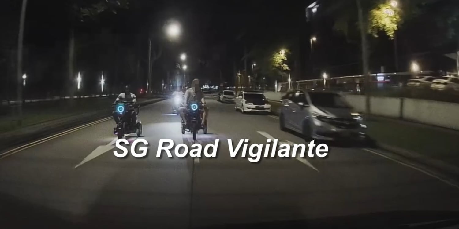 The footage, uploaded to the SG Road Vigilante Facebook page, shows the group riding along Woodlands Close near Woodlands Avenue 12.