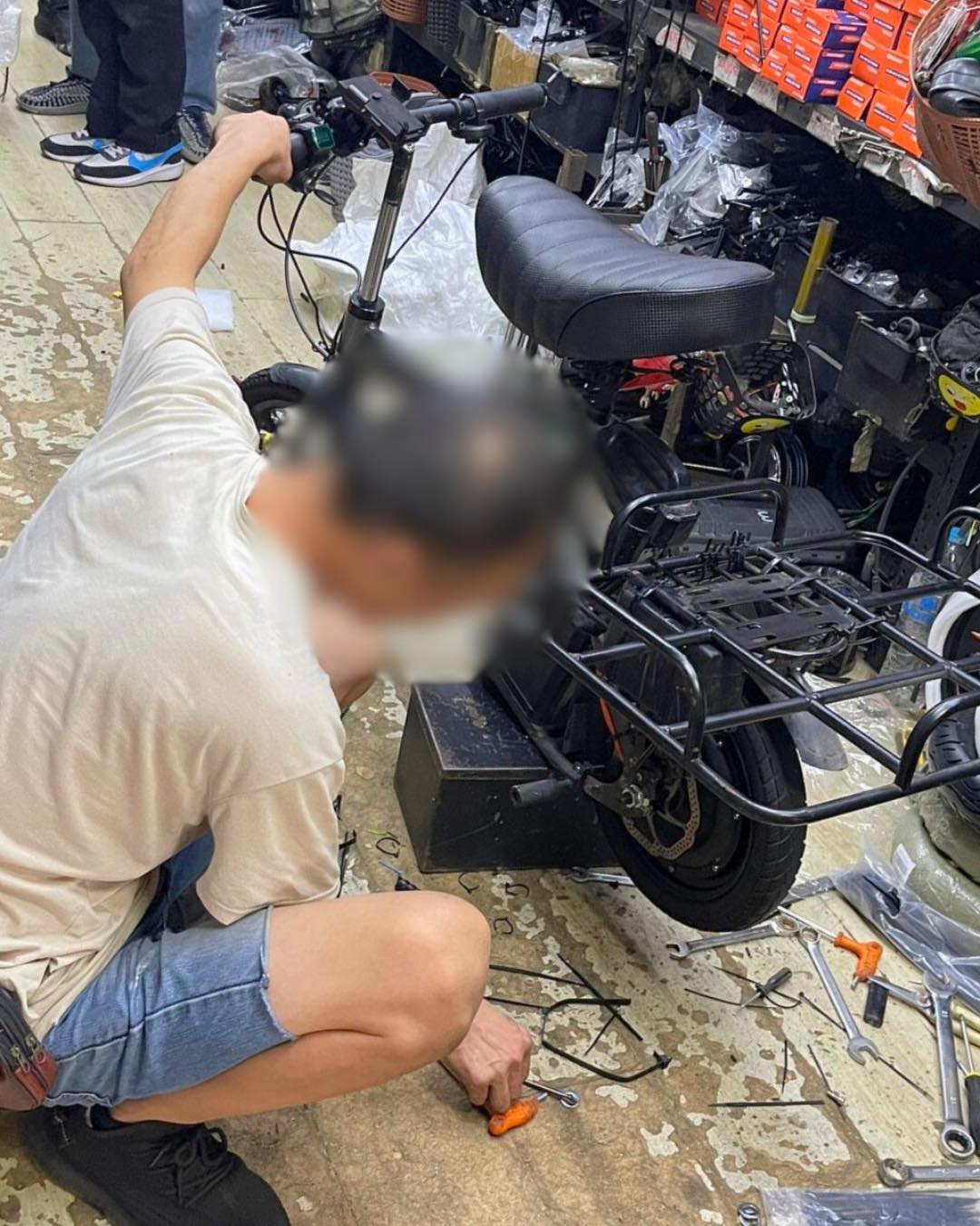 An e-bike shop in Yishun allegedly illegally modified a personal mobility device (PMD) by adding additional batteries, causing it to be not allowed for public use.