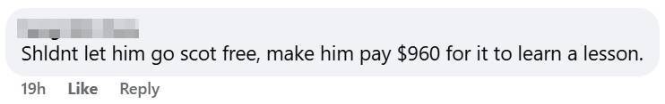 One Facebook user suggested that the man should be made to pay S$960 for the card.