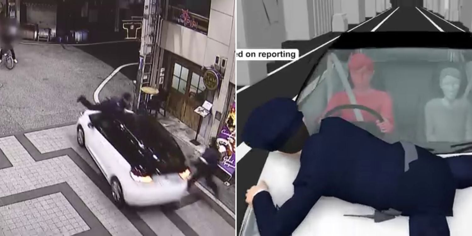 Police officer in Japan jumps onto hood of vehicle attempting to flee arrest