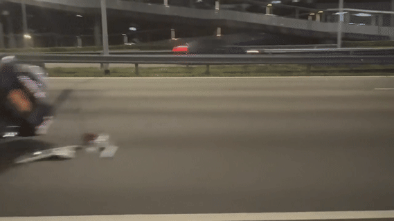 Dashcam footage of the aftermath, recorded by a passing vehicle and posted on Telegram, showed his motorcycle lying on its side in the middle of the expressway.