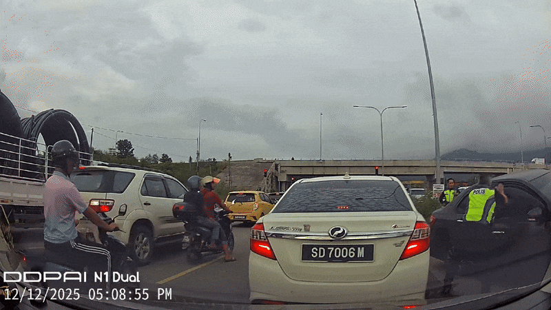Police officer in Malaysia rips car door to apprehend suspects who drove against traffic