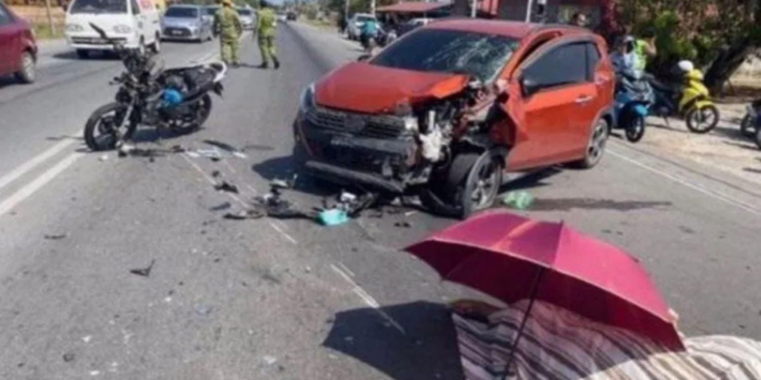 A pregnant woman in Pendang, Malaysia, lost control of her car and crashed into a motorcycle carrying a family of three, resulting in one fatality and two injuries.