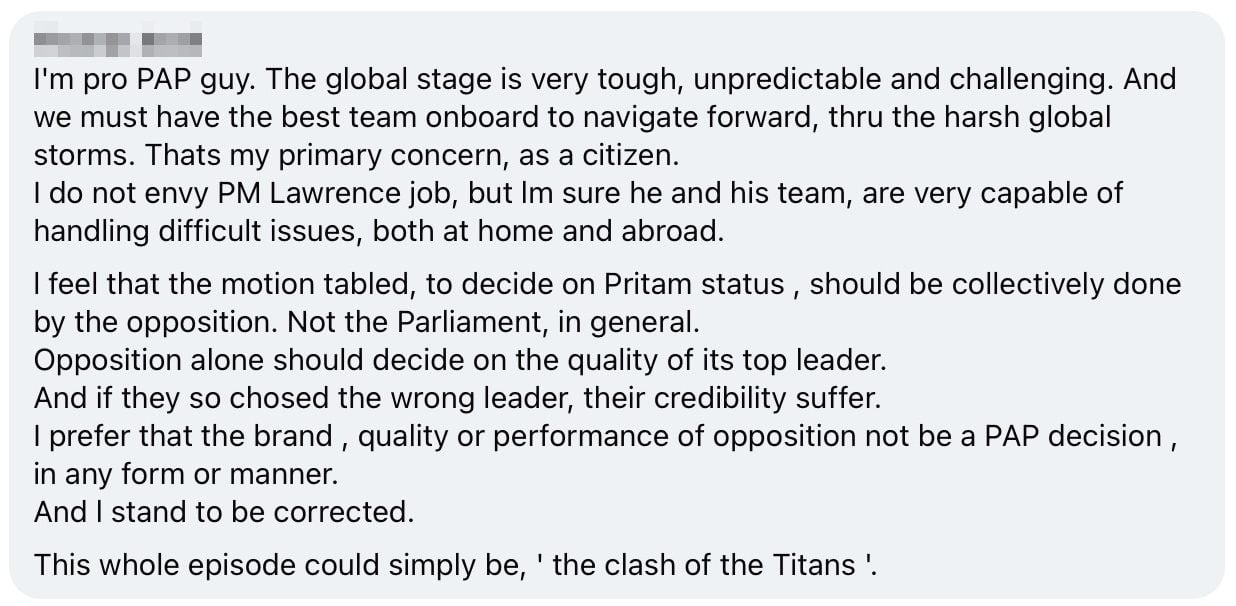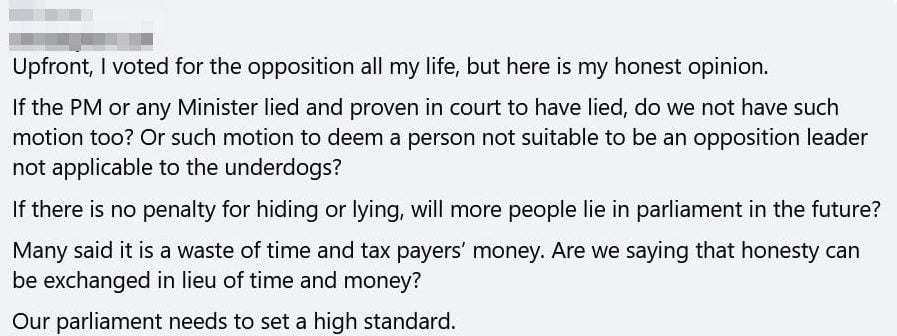 One Facebook user noted that the motion tabled to decide Mr Singh’s status should be “collectively done by the opposition” and “not the Parliament in general”.