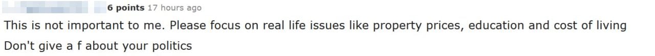 “Please focus on real life issues like property prices, education, and cost of living.”